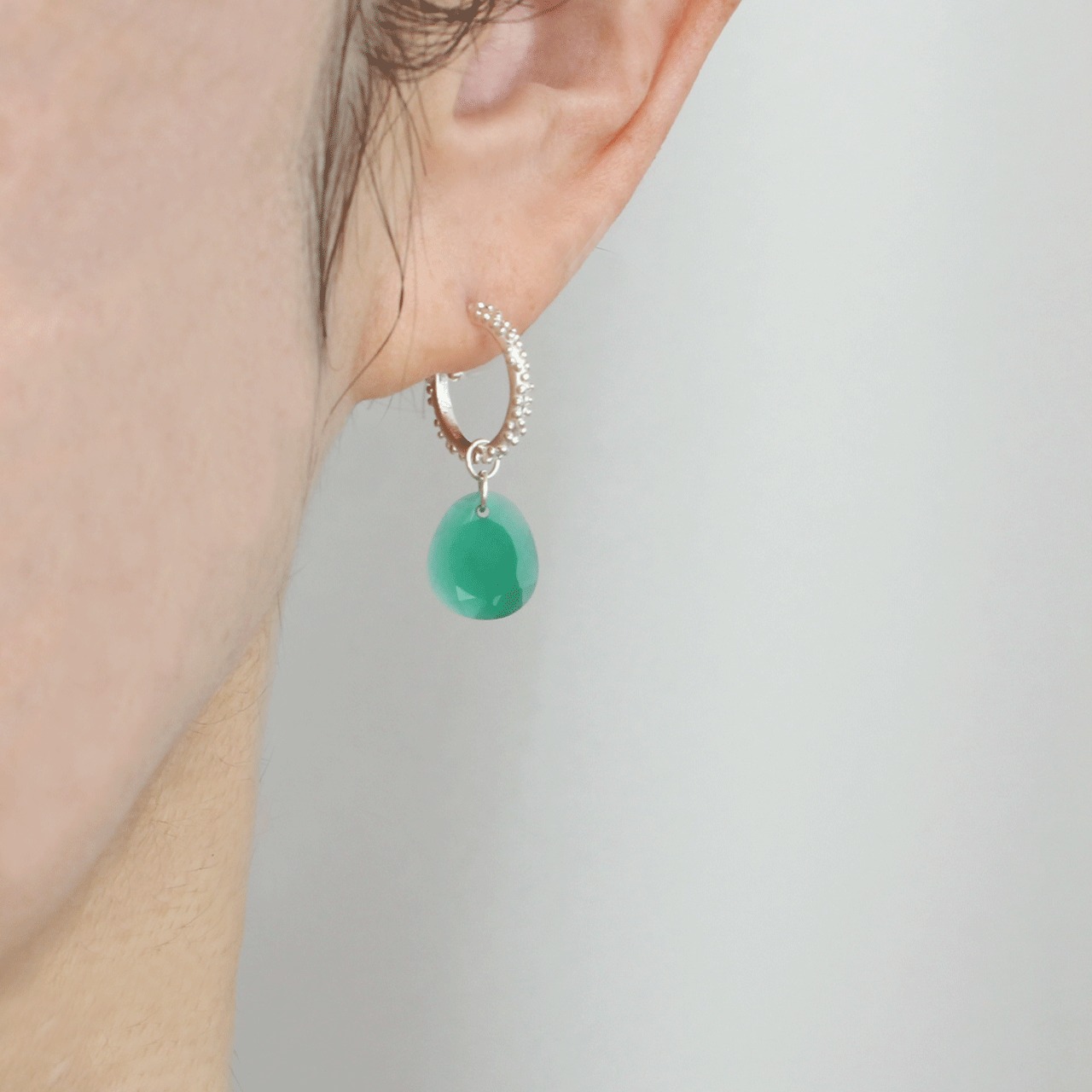 そのフープには取り外し可能な天然石をつけ、2Wayでお使いいただけるようにしました