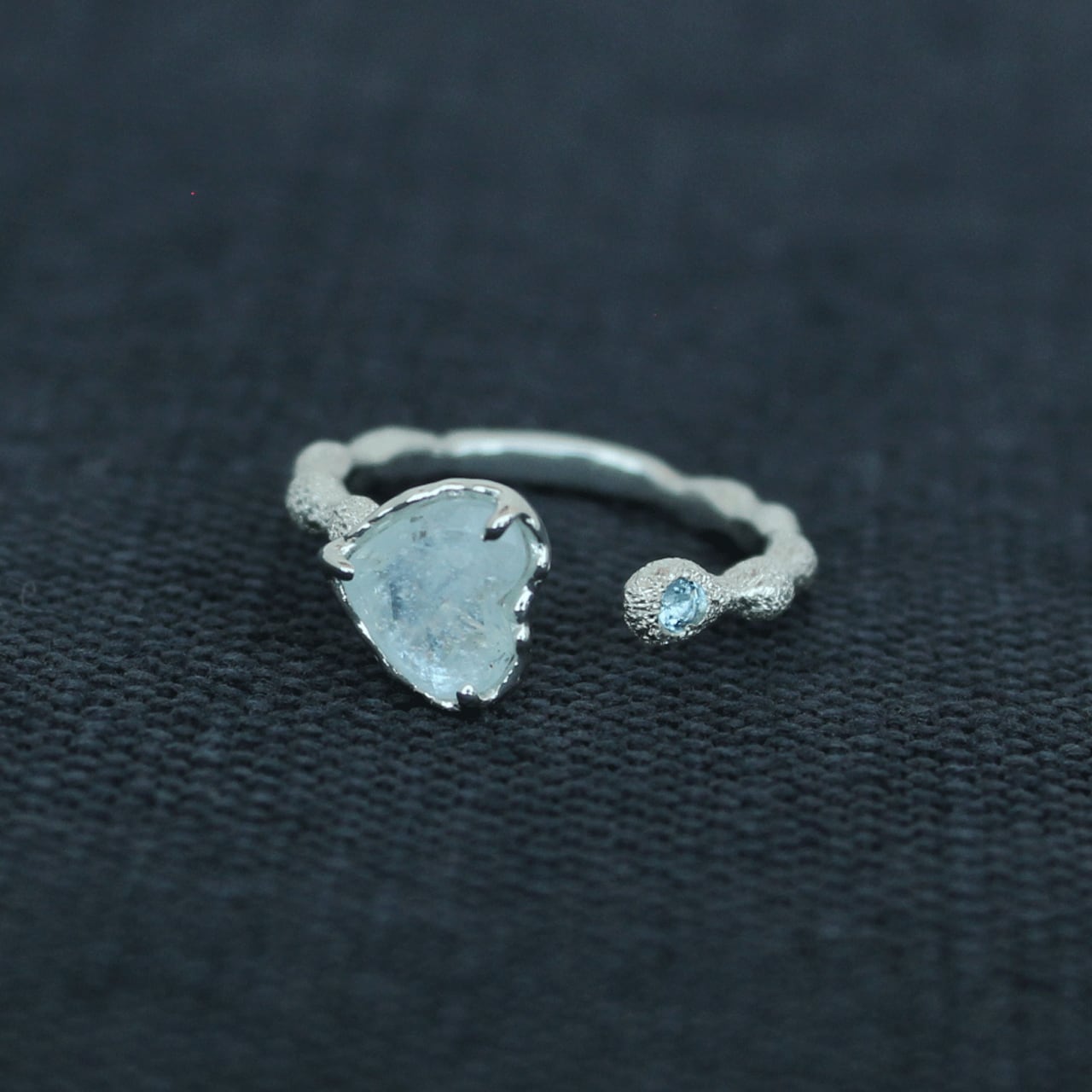 様々な自然の条件が重ならないと生まれない希少な石で、こちらはハートカットが瑞々しい煌めきのキュートなピース