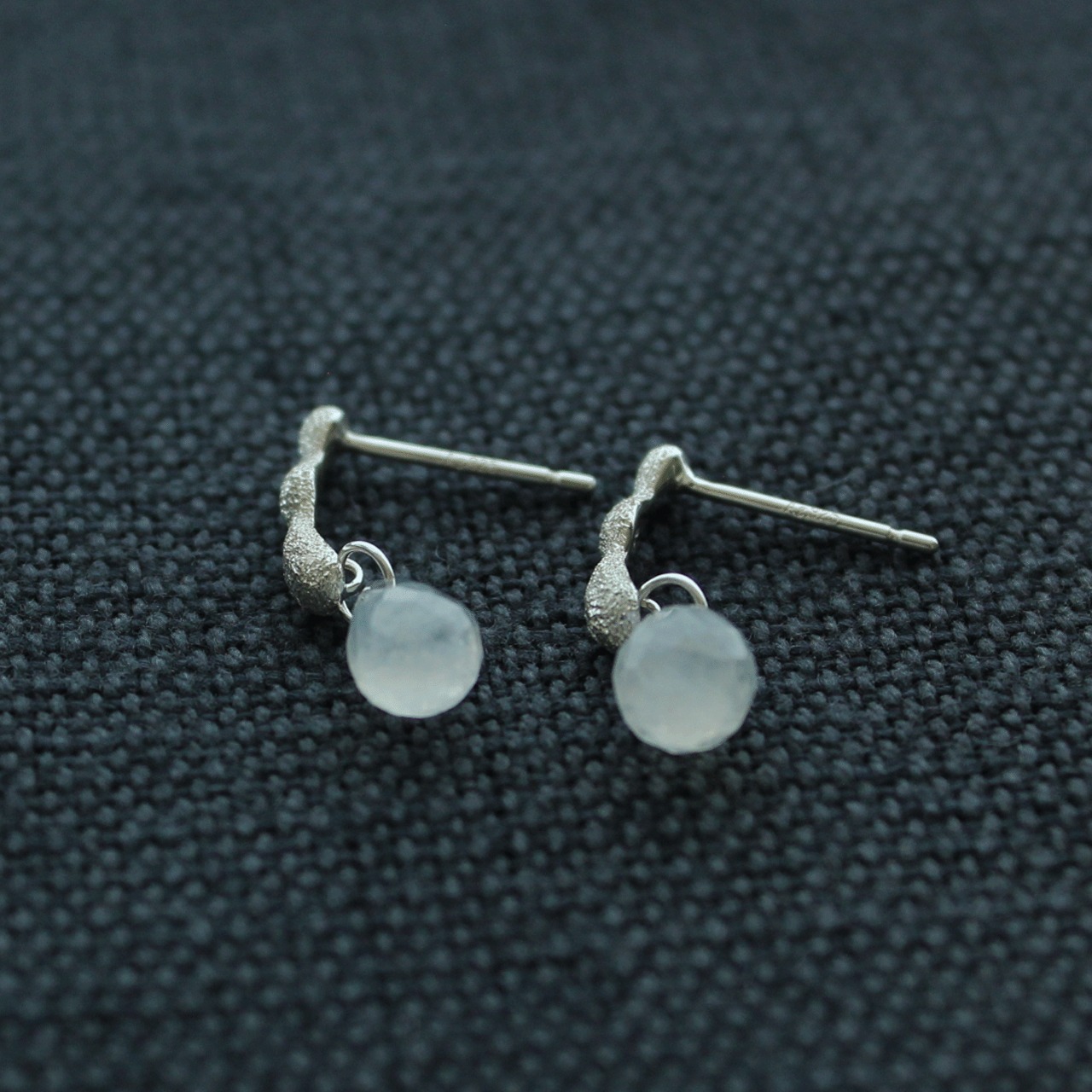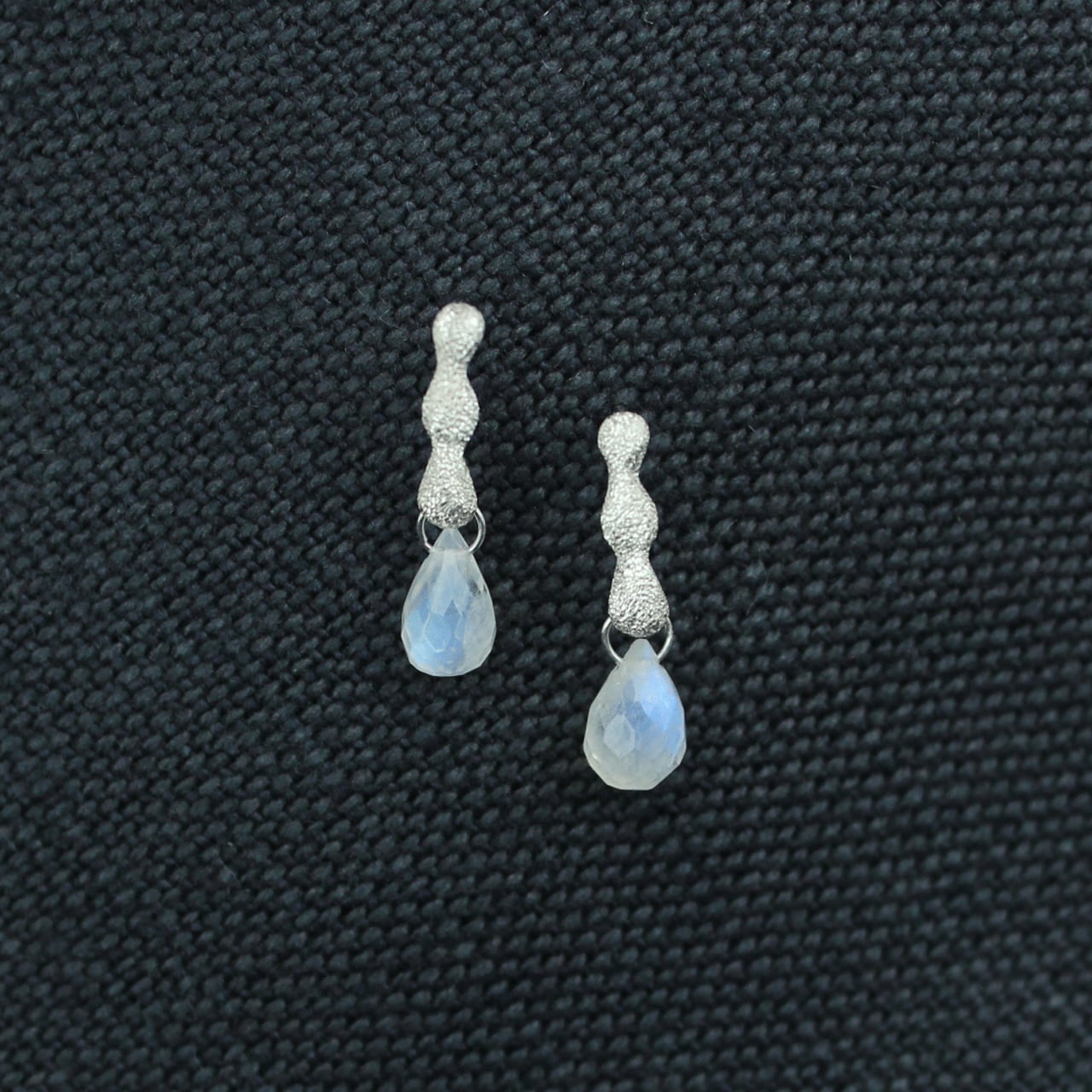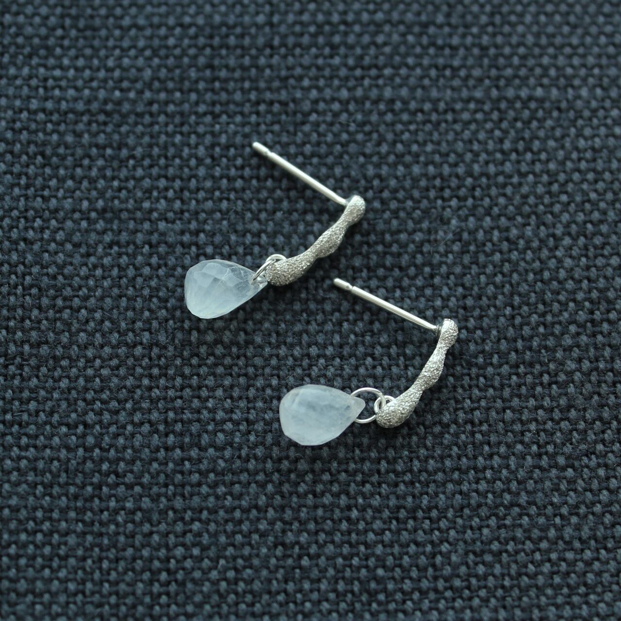 モチーフ先端のドロップ型のムーンストーンは、揺れるたび青白いシラーが浮かび上がり幻想的です