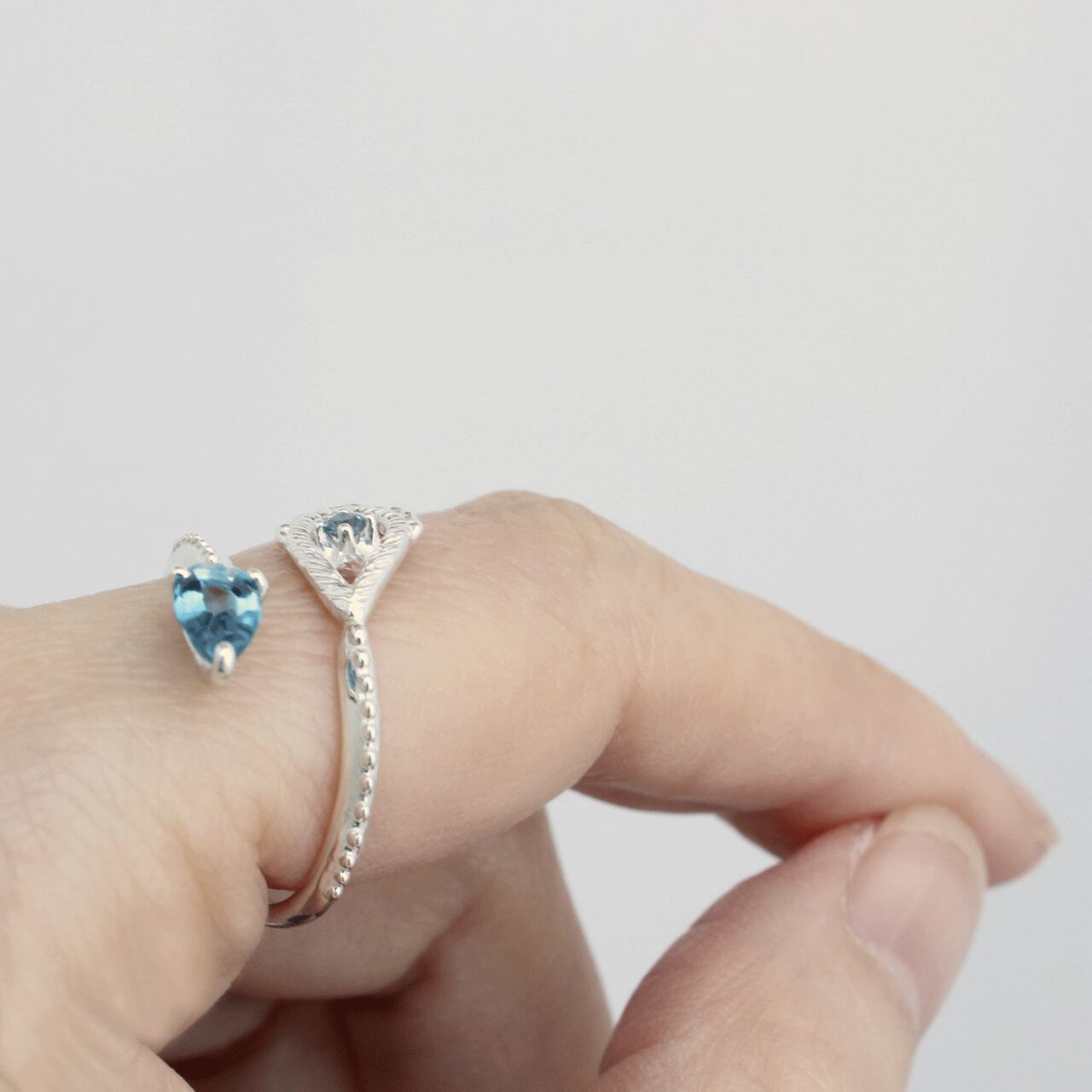 オープンデザインのためサイズを微調整でき、その日のコーディネートに合わせ、着ける指を変えたり、上下を変えても楽しめます