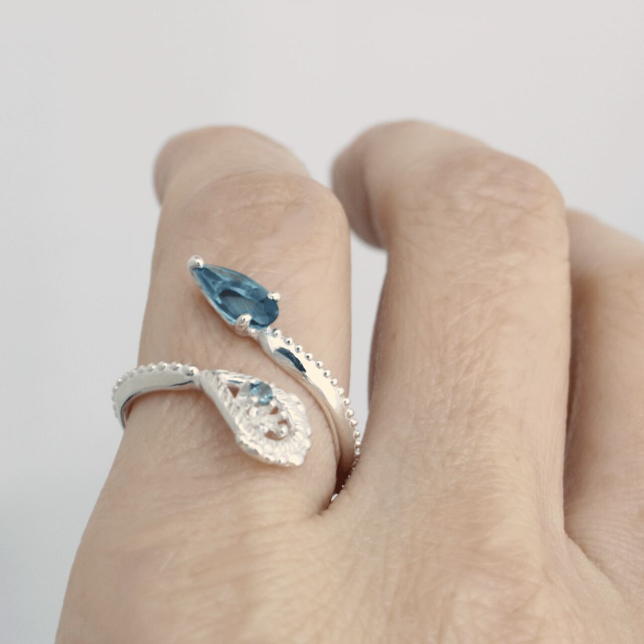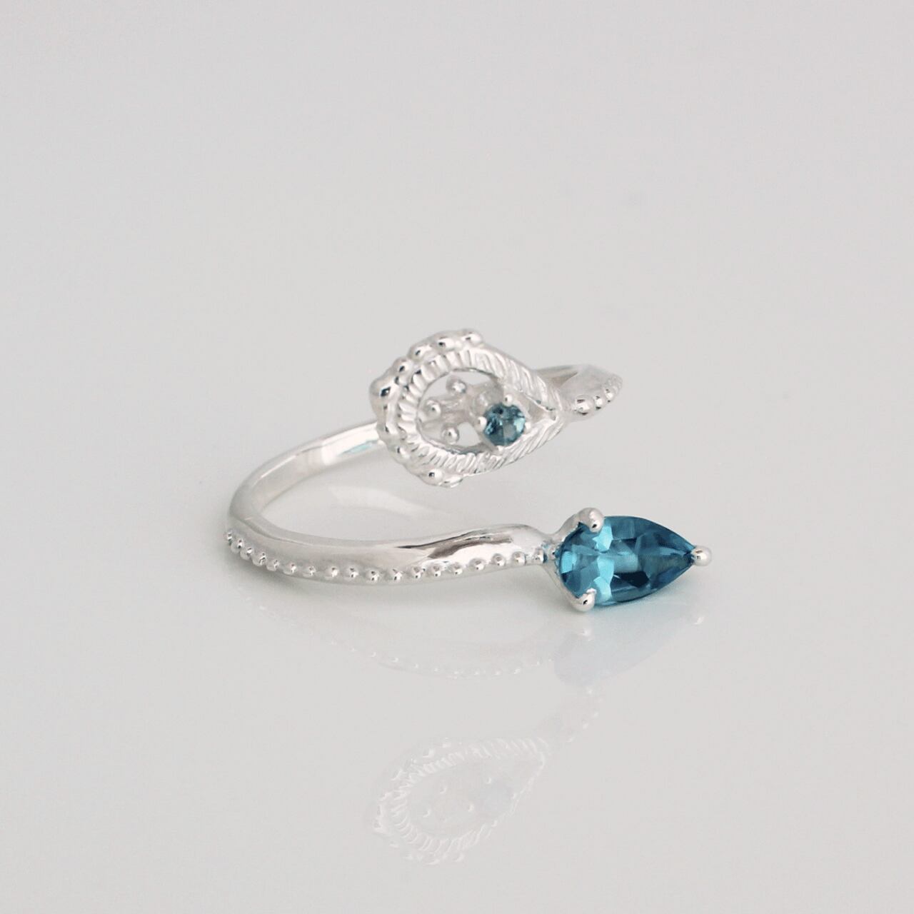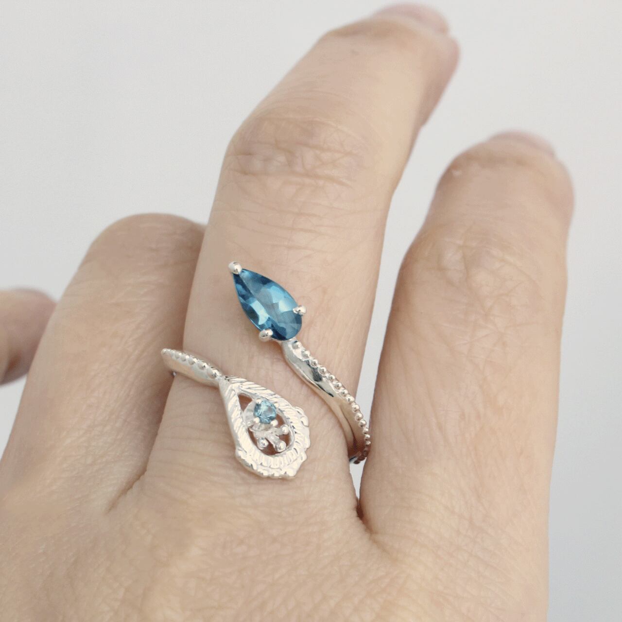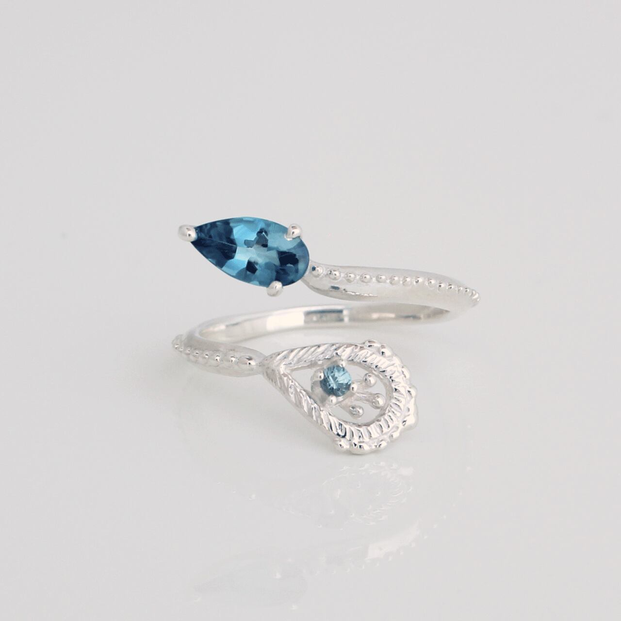 孔雀をイメージし、螺旋を描くフリーリング