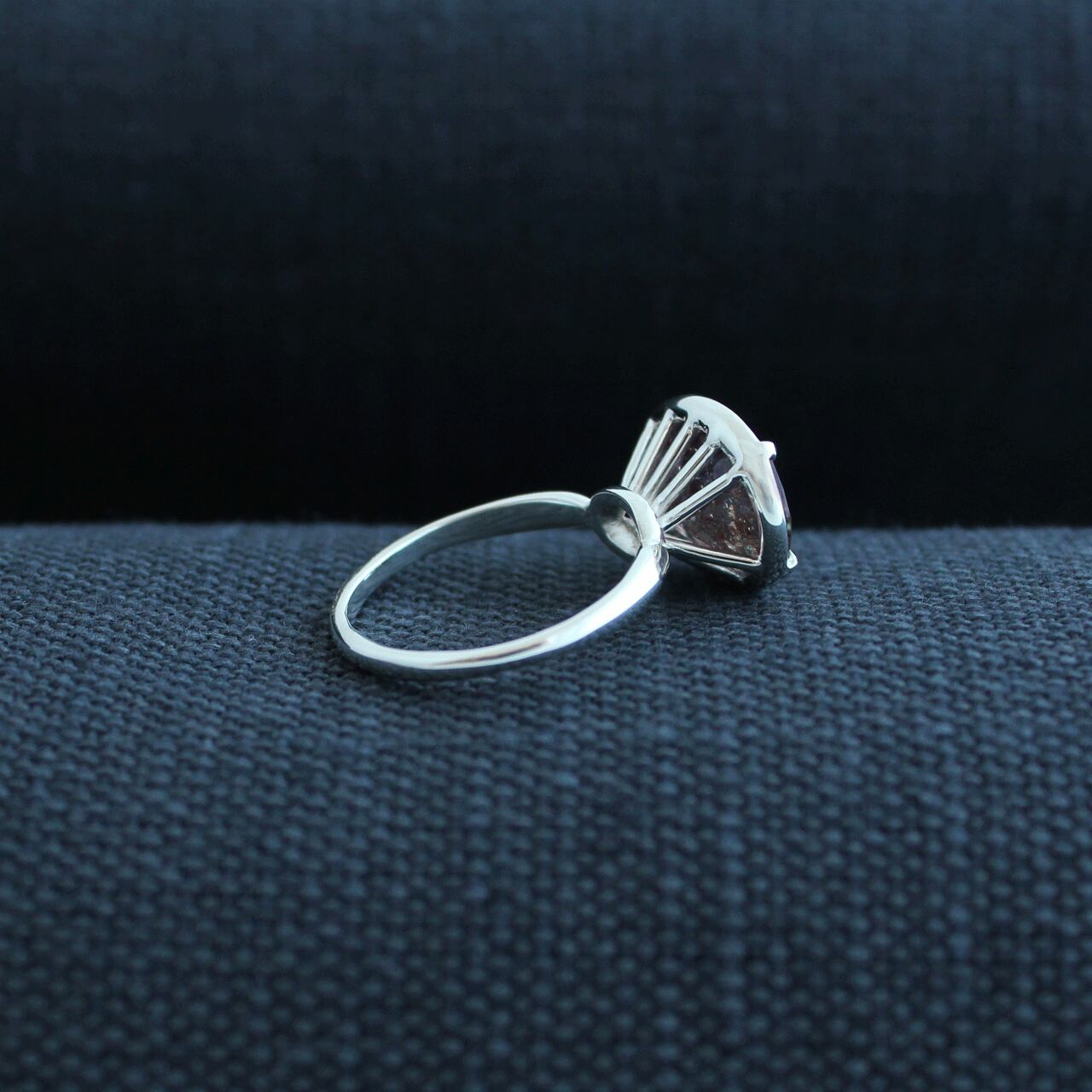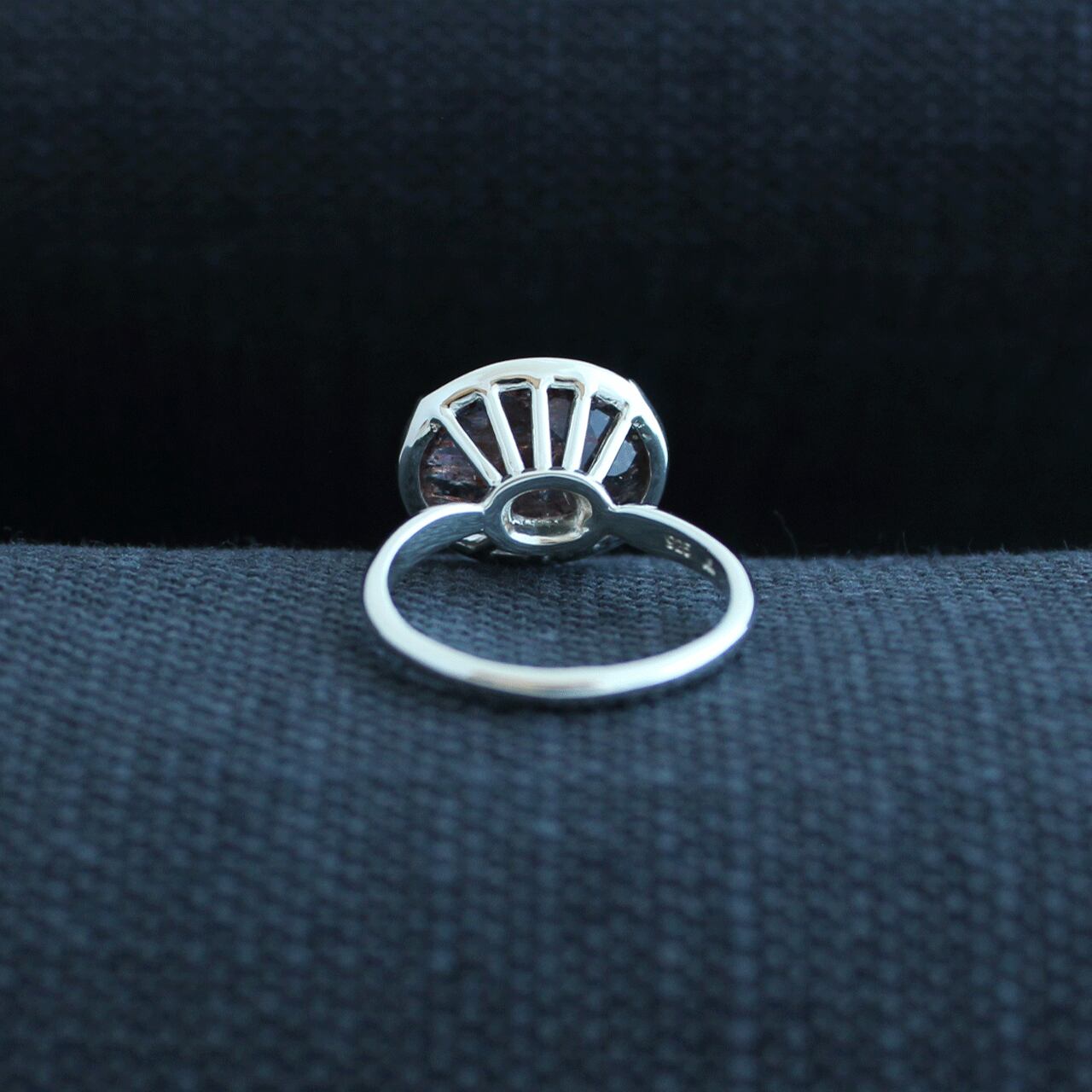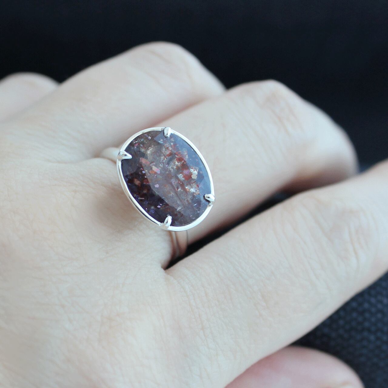 濃色でラメラメ感の強い石ですが透明感も持ち合わせたピースなので、光に透かして覗くと石枠が光の筋のように、うっすらと浮かび上がって見えるのも持主の特権です