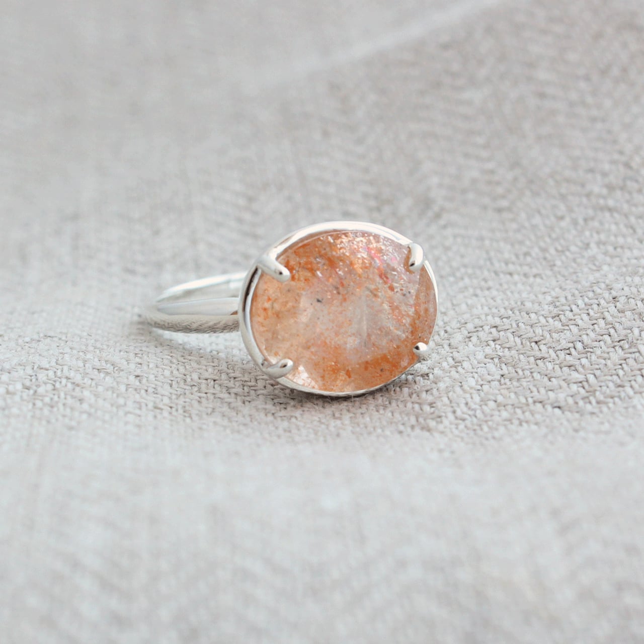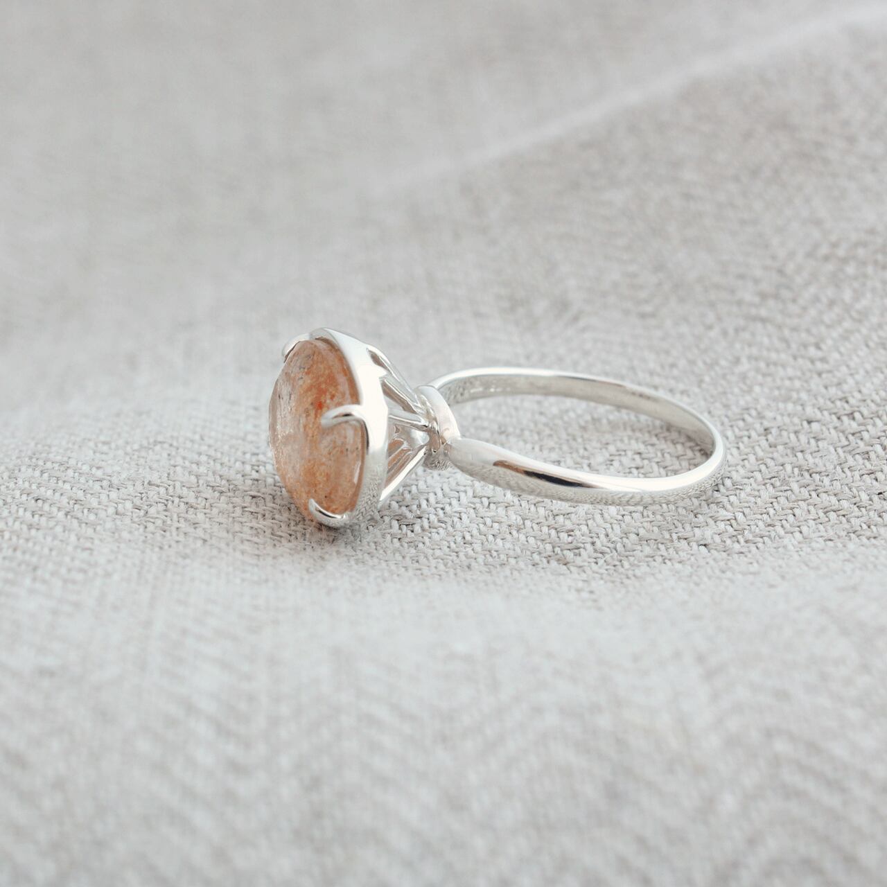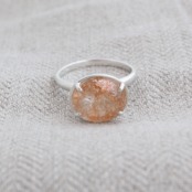 淡いオレンジ系の濃淡と細かいラメの入り方が美しいオーバルカットのサンストーン